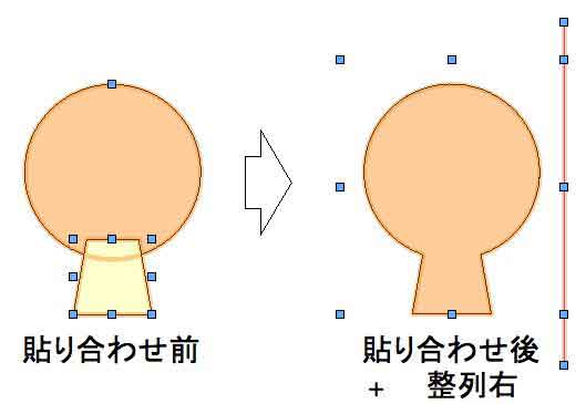 左が張り合わす前、右が張り合わせ後右の線に整列させたところ