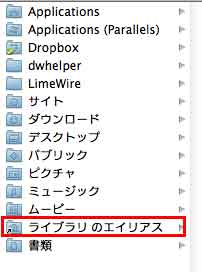 2 上記の「Option」キーを押しながら表示させて、エイリアスを作る。