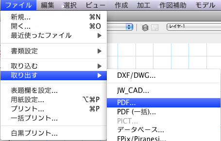 ●メニュ>ファイル>取り出す>pdf(一括)... ※これはDX版