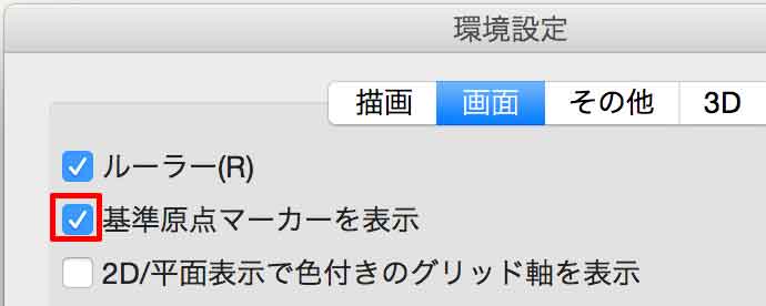 Vectorworksメニュ>環境設定>画面タブ