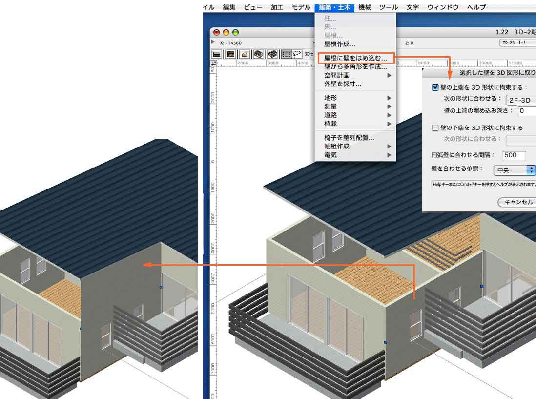 勾配屋根の時、壁高の編集がとても楽ですね!お気に入りの