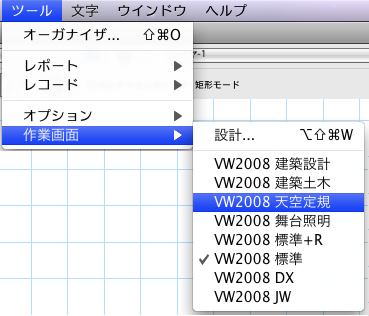 天空定規インストーラをダブルクリックしてインストールする。 ツールメニューから「作業画面」>VW2008天空定規 を 選択