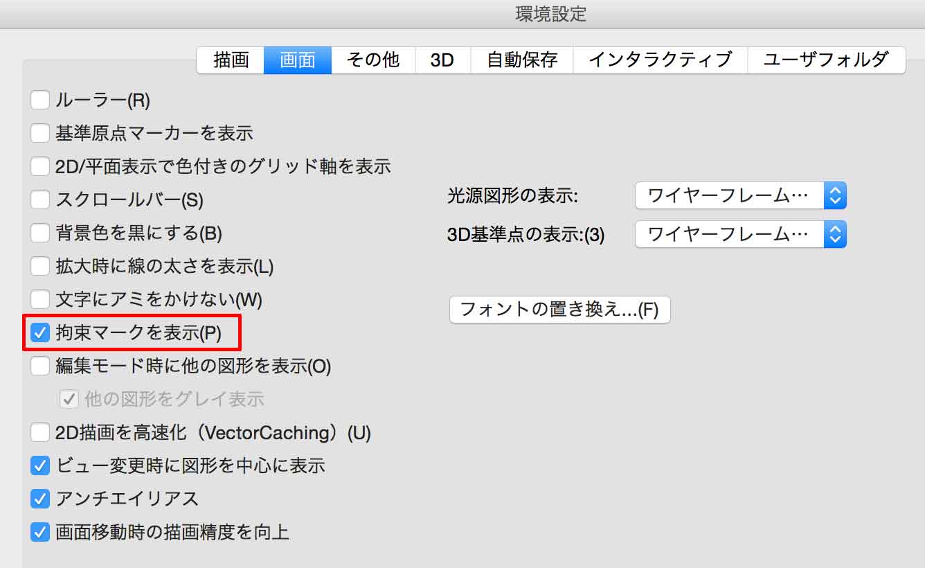 Vectorworksメニュ>環境設定...>