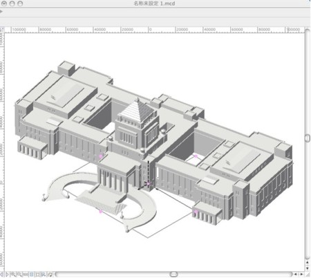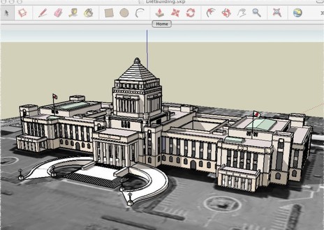 先頃、A&AからDXユーザー向けに公開されたSketchUP取り込みプラグイン、 SketchUPユーザーなら以前 からDXF、3DSによってVectorworksに渡せる。 勿論、直に取り込め、3D図形が3Dメッシュなどではなく VWの壁、床等のデータとして取り込めるのはメリットかもしれない。しかし、もう一つメリットが有りそ う!? 無償であるGoogleSketchUPがVectorworksと併用して使えるかも・・・。 また、GoogleEarthの 計り知れない程の全世界の建物の3Dデータが公開されているのでこれは面白そうだ。 (GoogleSketchUP にはDXFや3DS取り出しはないがSKPファイルの保存はできる) 試しに[3Dギャラリー]からデータを落とし、VW12へ取り込んでみました。 テストファイルは「国会議事堂」まだ、何故だか原因は判りませんが取り込めないファイルもありました 太陽の塔と新梅田シティはVWがハングアップ。しかし、無償のGoogleSketchUPで3DスケッチしてVWで 更に詰めるって事や敷地周辺の建物などをインポートして検証なんて事が可能かな?。