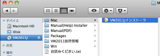 DVD内の「Mac」フォルダ内、「VW2011Jインストーラ.app」をダブルクリックしてください。