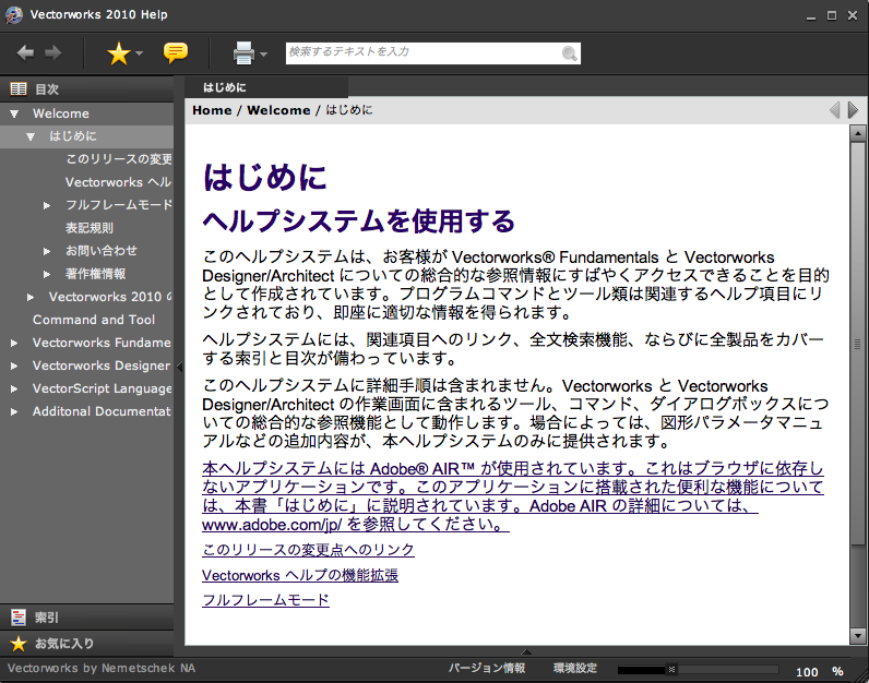 メニュー>ヘルプ からヘルプを見ようとすると