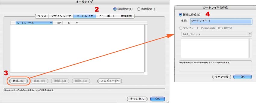 2.  開いた【オーガナイザ】ウィンドウの『シートレイヤ』タグをクリックします。