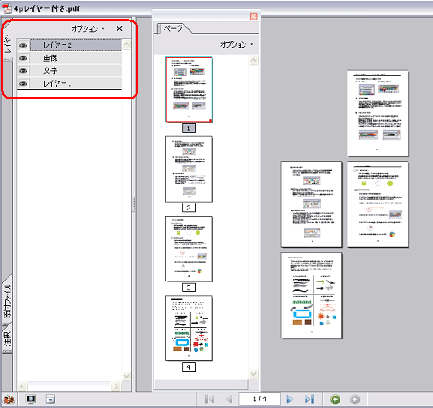 複数のレイヤーを設け、PDF表示でレイヤーの表示、非表示を切換えたい場合にはファイルを「開く」操作が必要です。
