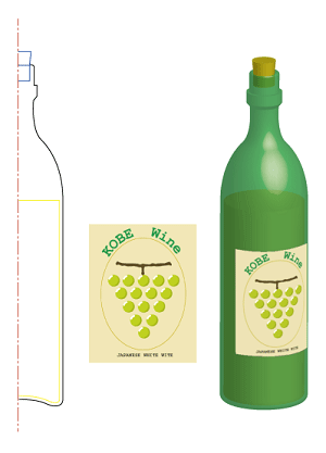 前者のサンプルとしてワインボトルを載せます。ワインボトル、中身のワインおよびコルクの断面形状を右半分(左半分でもよい)作図します。